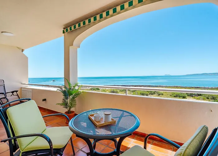 39 Front Row Panoramic Sea View Estepona, un apartamento de 128 m², situado a 5 minutos a pie de la Playa Cristo y el Centro de Negocios y de Internet del Puerto de Estepona, ofrece vistas al mar. Los huéspedes pueden utilizar el Wi-Fi y el aparcamiento privado gratuito, que se encuentra en las instalaciones.